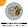Baked seabass with garlic, rosemary, oregano, parsley serve with brown rice.