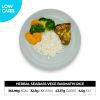 Baked seabass with garlic, rosemary, oregano, parsley serve with basmathi rice.